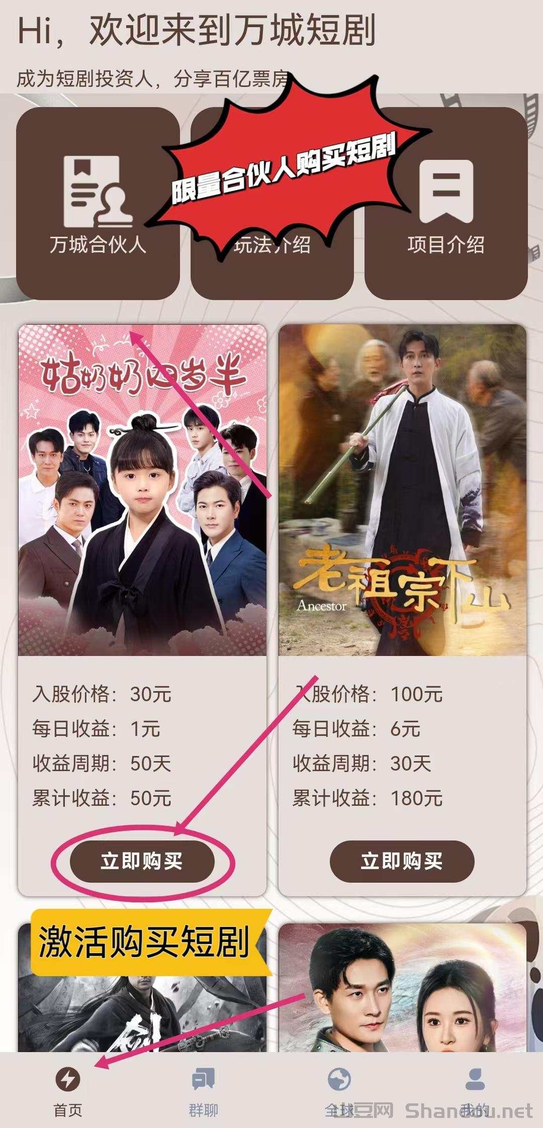 2.支付300元,成为万城合伙人;享受价值900元的股金分红,每天收益20元(限量发售)