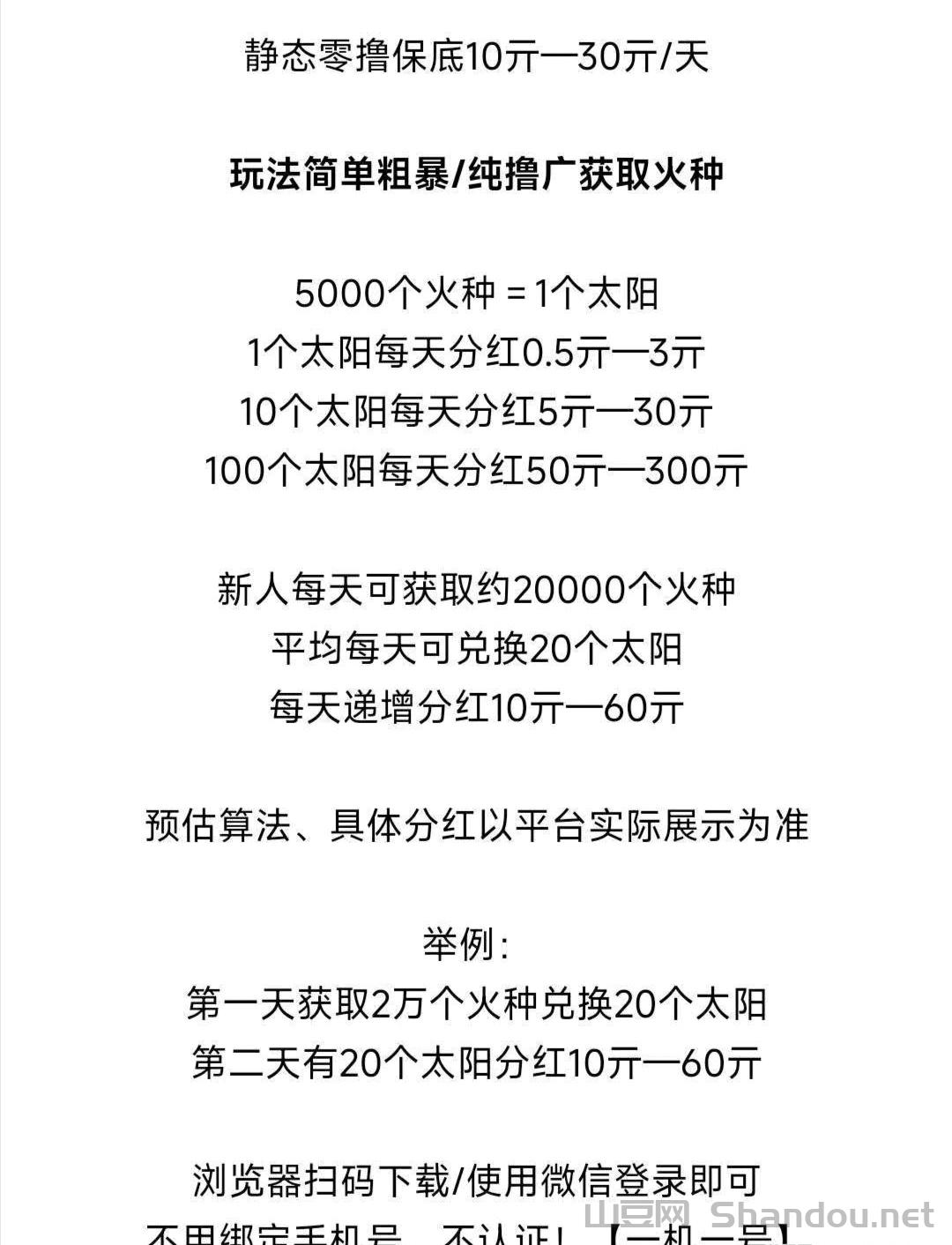 霸气云天零撸项目,看广告单包最高5000火种,兑换太阳分红0.5-3元