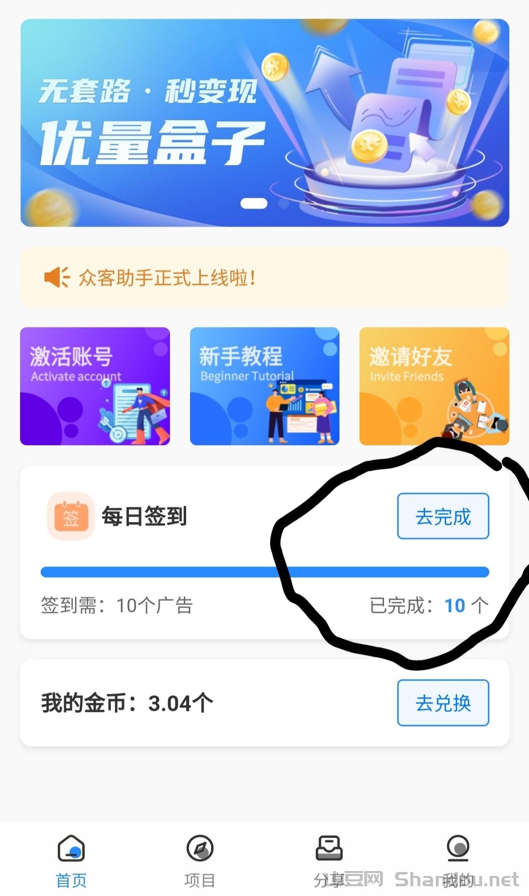 优量盒子,用户每日观看10个广告享3-5元奖励